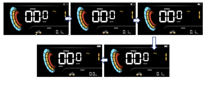 - Press the power button briefly to cycle through the speedometer modes (normal, MAX, AVG)