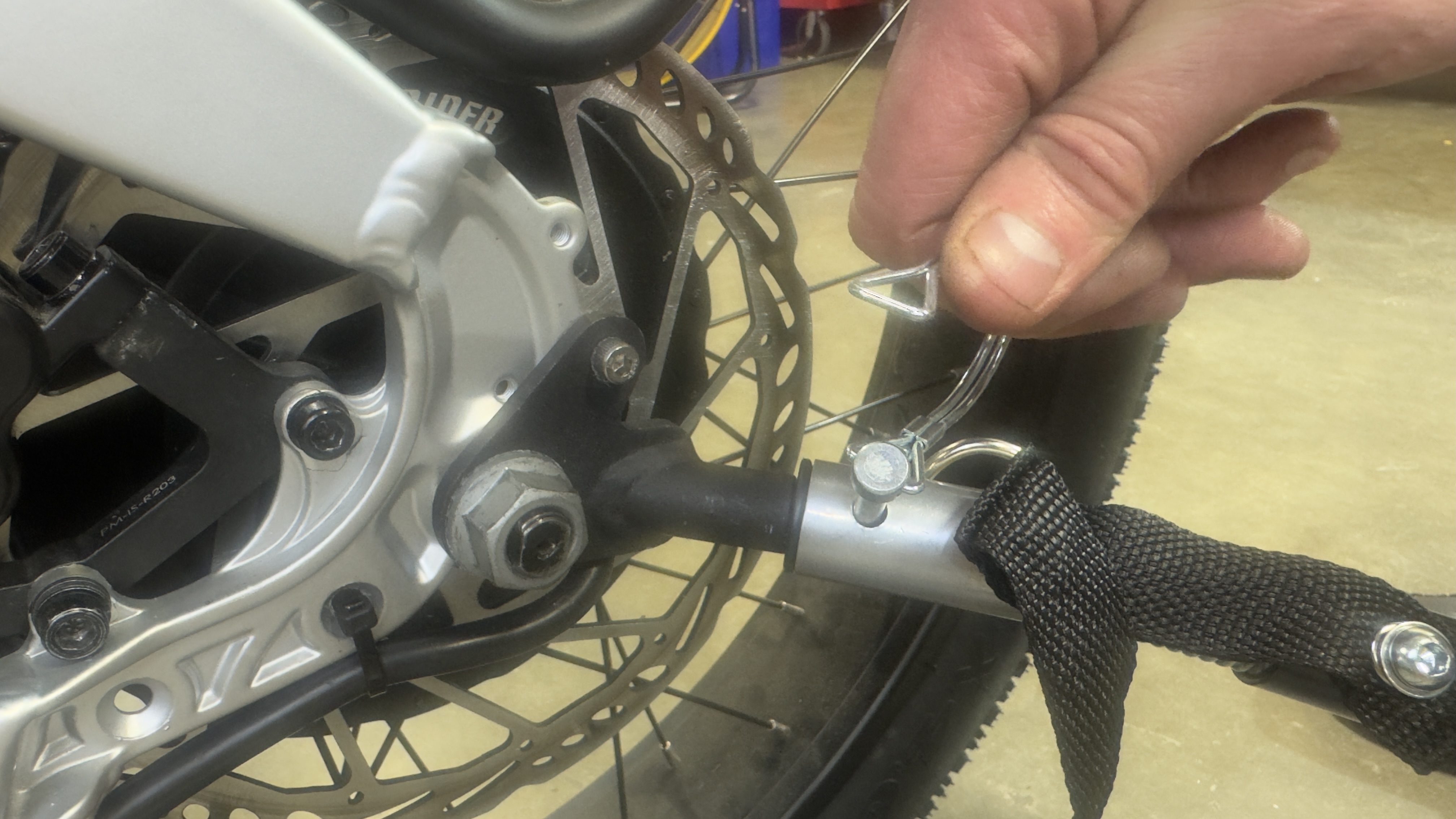 - Remove the rear axle nut on the same side of the bike as the brakes